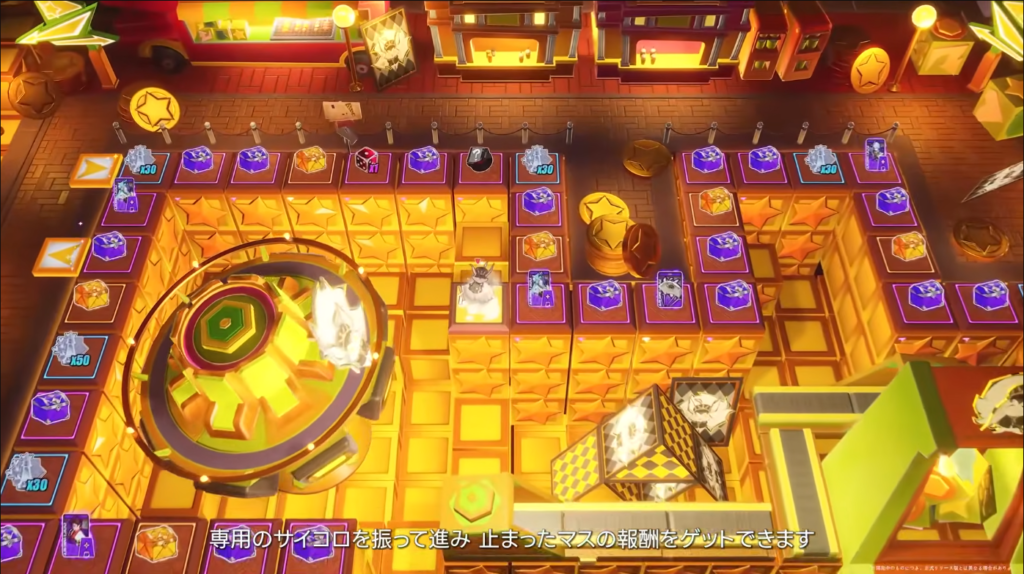 ボードゲームのようにサイコロを振って出た目の数だけ進み、そのマスの報酬を獲得するというものです。